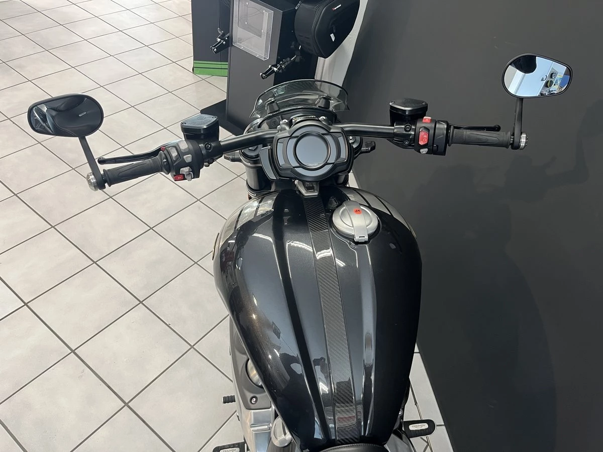 Allgemeines: - Limitiertes Modell TFC (Triumph Factory Custom) - Nummer 619 von 750 Fahrzeugen weltweit - mit Echtheitszertifikat - mit TFC-Rucksack, TFC-Mappe & TFC-Buch - alle Originalteile sind vorhanden Wartung & Service: - scheckheftgepflegt - um- & unfallfrei - alle Kundendienste & Umbauten wurden von uns als Triumph Vertragshändler durchgeführt - TÜV NEU vor Verkauf Zubehör: - Griffheizung original Triumph - kleines Windschild original Triumph - Bluetooth-Modul - seitlicher Kennzeichenhalter von Wunderkind Custom - mini-LED Blinker vorne & hinten von Wunderkind Custom Vom Triumph Vertragshändler aus dem Allgäu --- UM LANGE WARTEZEITEN ZU VERMEIDEN, UND PROBEFAHRTEN ZU ERMÖGLICHEN, VEREINBAREN SIE BITTE EINEN TERMIN