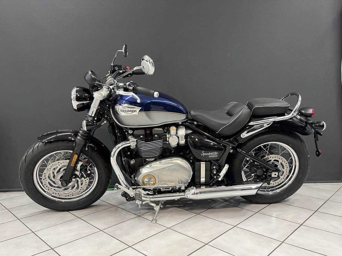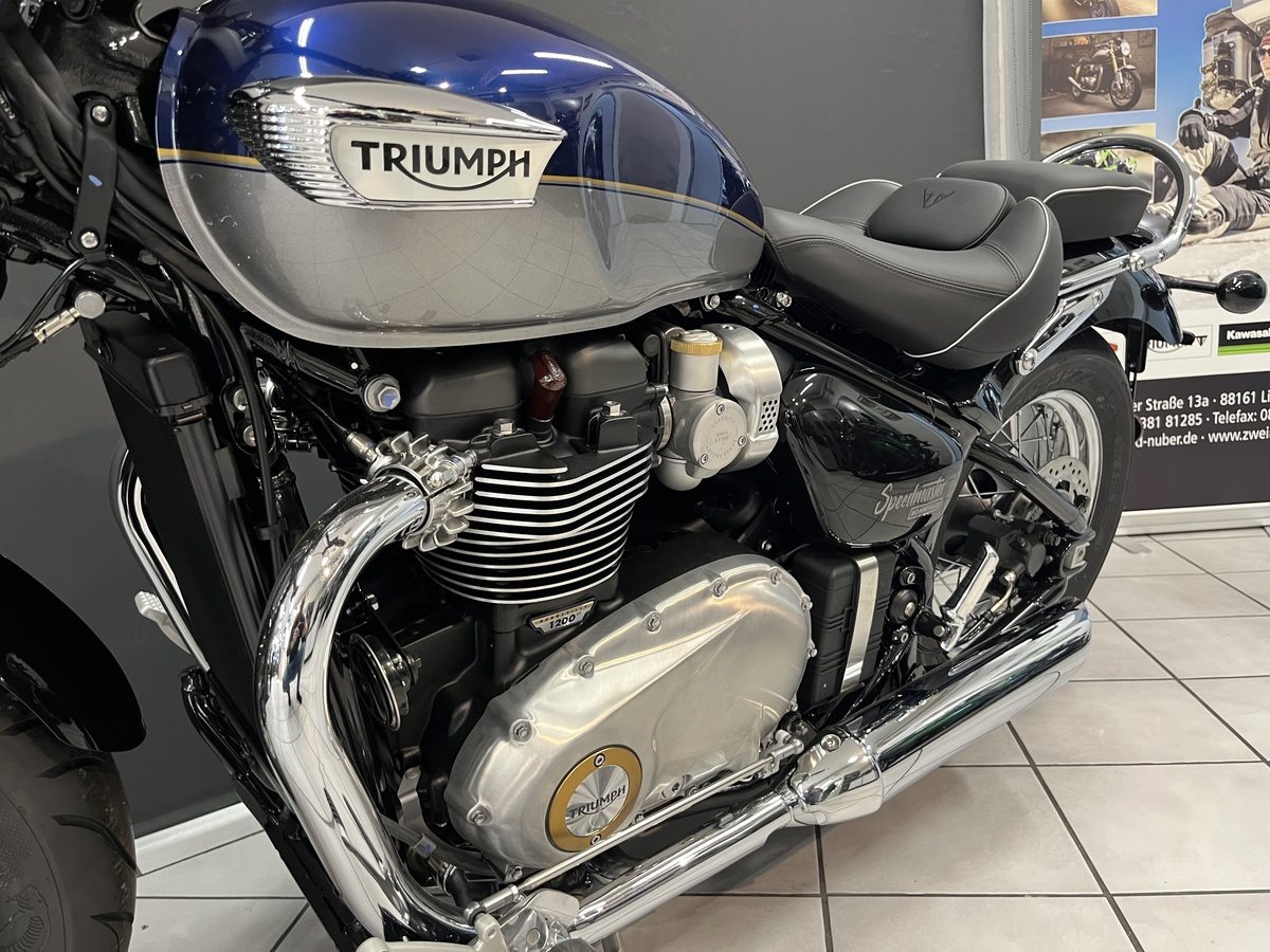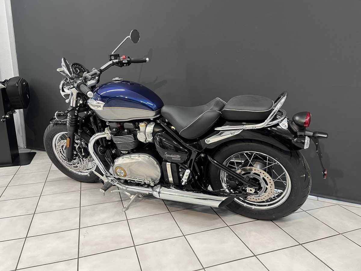 Mit ihrem authentisch britischen Custom-Design, dem 1.200 cm Motor mit spontanem Ansprechverhalten und der lässigen Fahrposition bietet die Speedmaster ein umfassend weiterentwickeltes und entspanntes Cruiser-Fahrerlebnis. --- UM LANGE WARTEZEITEN ZU VERMEIDEN, UND PROBEFAHRTEN ZU ERMÖGLICHEN, VEREINBAREN SIE BITTE EINEN TERMIN